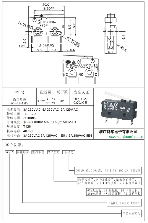 微動開關(guān)KWQ-YZ-1SF2