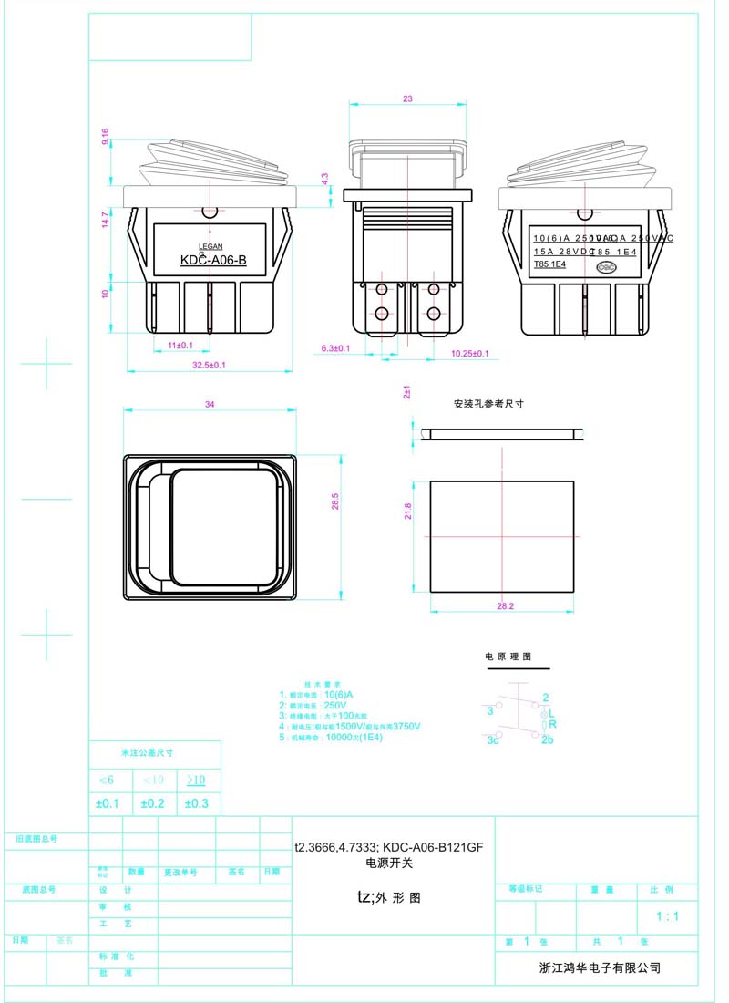 - Rocker switch with waterproof KDC-A05-121BB14F1