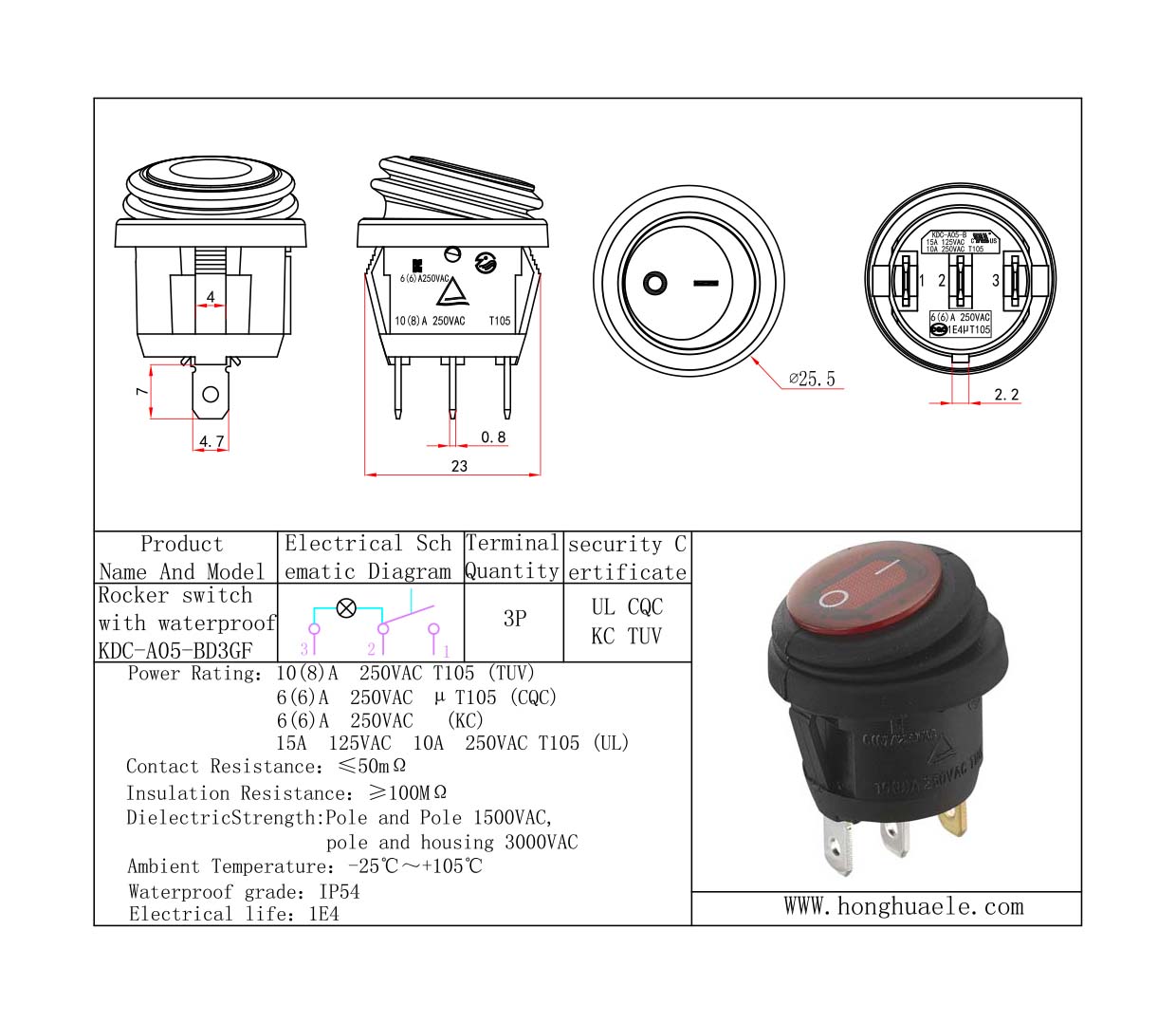 Rocker switch with waterproof KDC-A05-BD3GF