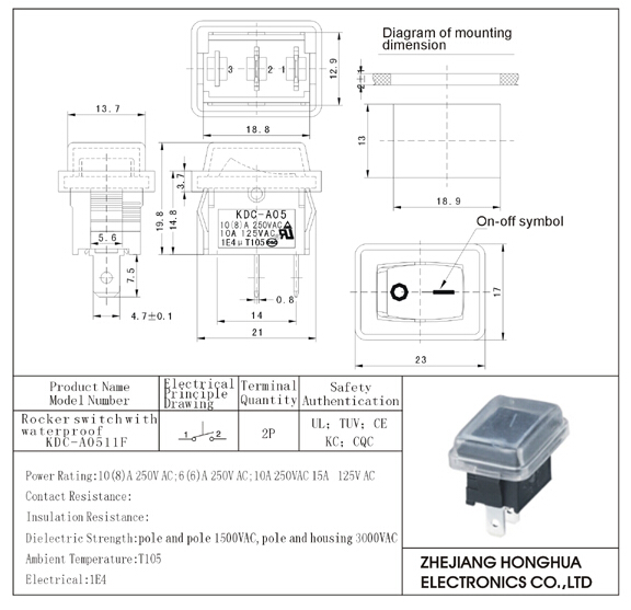 KDC-A0511F Rocker switch with waterproof