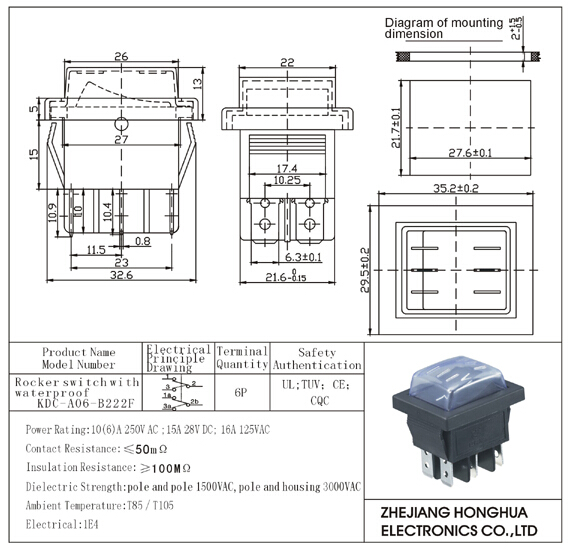 KDC-A06-B222F Rocker switch with waterproof