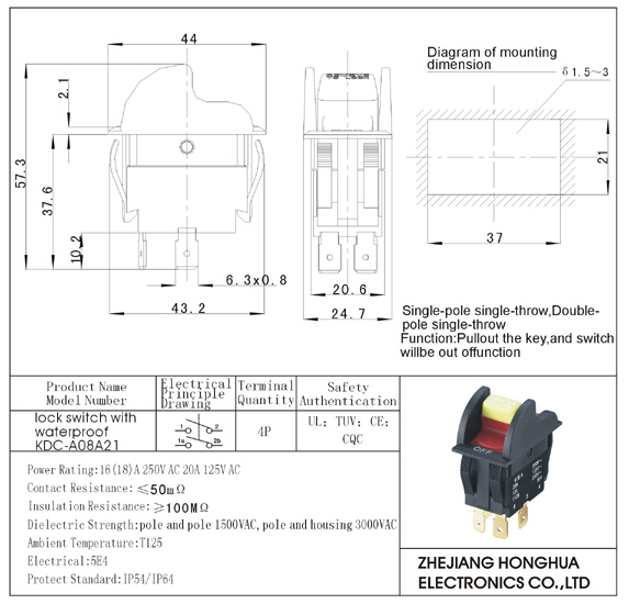 KDC-A08A21 lock switch with waterproof